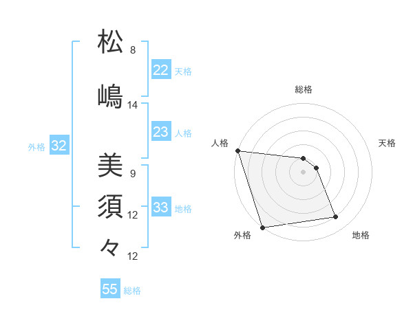 松嶋 美須々さんを姓名の画数から五運を鑑定