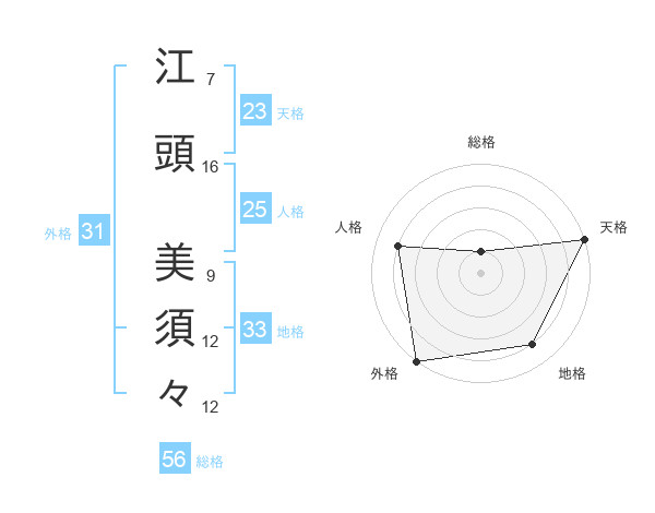 江頭 美須々さんを姓名の画数から五運を鑑定