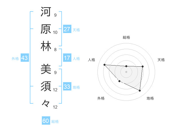 河原林 美須々さんを姓名の画数から五運を鑑定