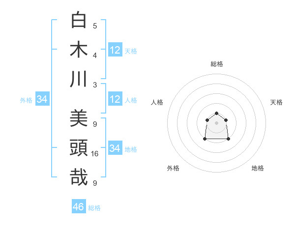 白木川 美頭哉さんを姓名の画数から五運を鑑定