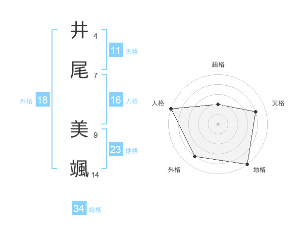井尾 美颯さんを姓名の画数から五運を鑑定