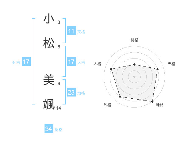 小松 美颯さんの外格は17画の4点!