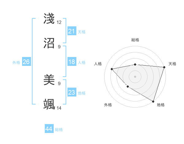 淺沼 美颯さんの天格は21画の5点!