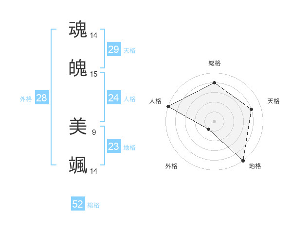 魂魄 美颯さんを姓名の画数から五運を鑑定