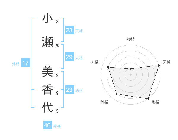 小瀬 美香代さんを姓名の画数から五運を鑑定