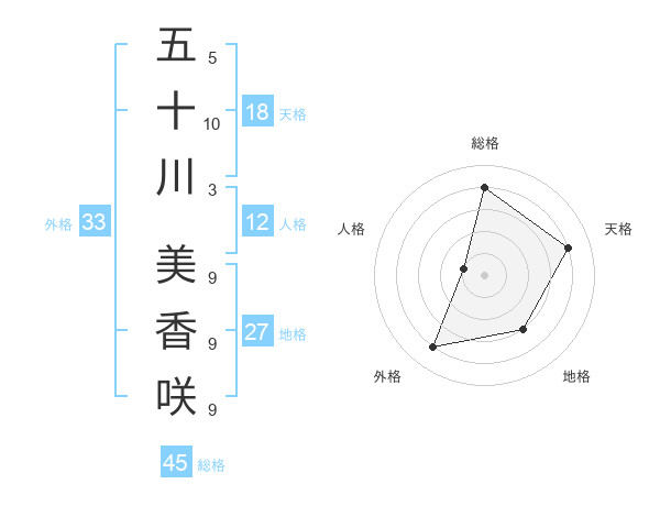 五十川 美香咲さんを姓名の画数から五運を鑑定
