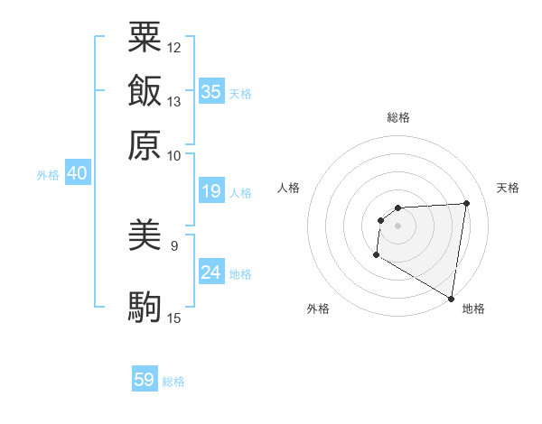 粟飯原 美駒さんを姓名の画数から五運を鑑定
