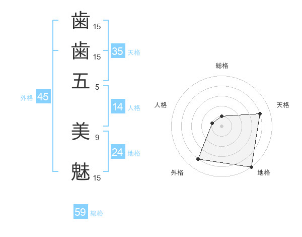 歯歯五 美魅さんの総格は59画の1点!