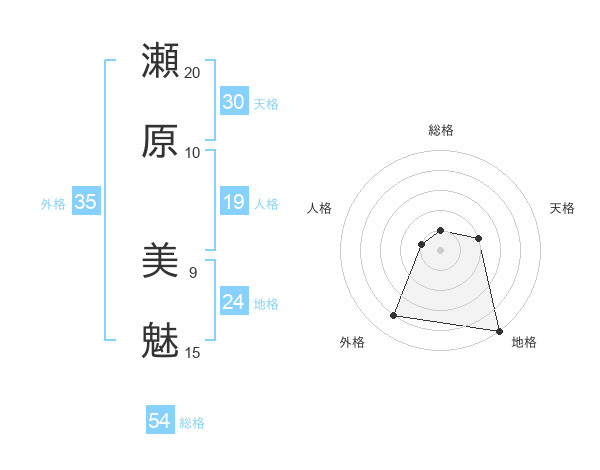 瀬原 美魅さんの総格は54画の1点!