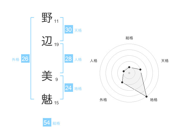 野辺 美魅さんを姓名の画数から五運を鑑定