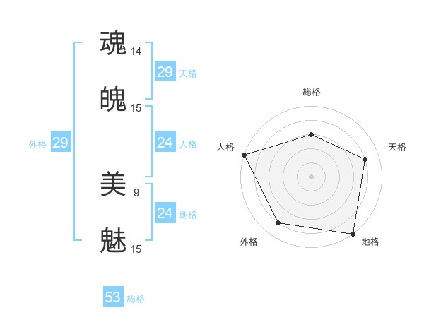魂魄 美魅さんの外格は29画の4点!