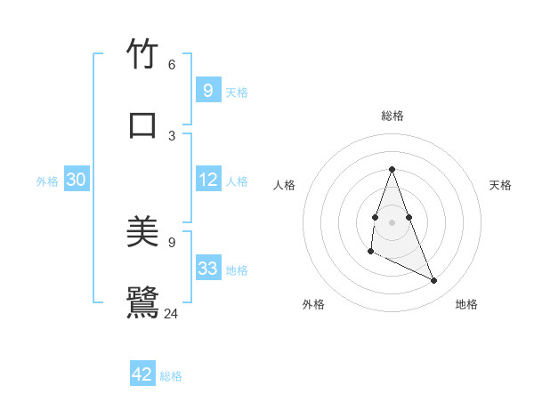 竹口 美鷺さんを姓名の画数から五運を鑑定