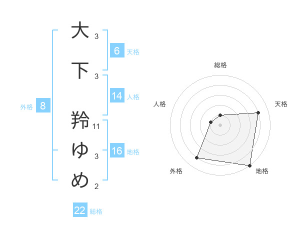 大下 羚ゆめさんの総格は22画の1点