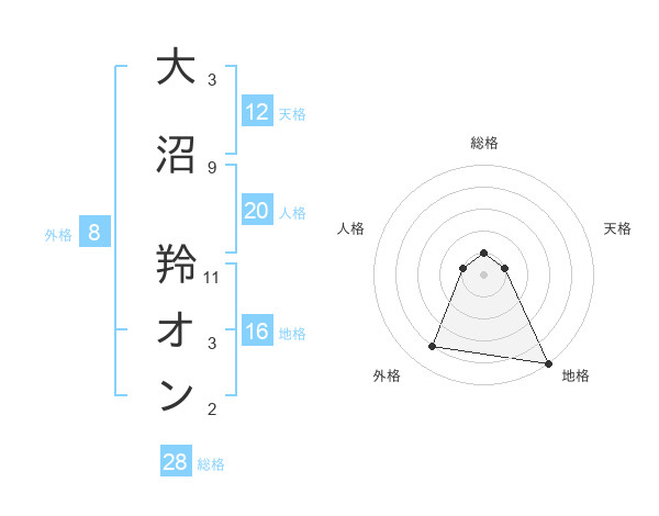 大沼 羚オンさんの天格は12画の1点!