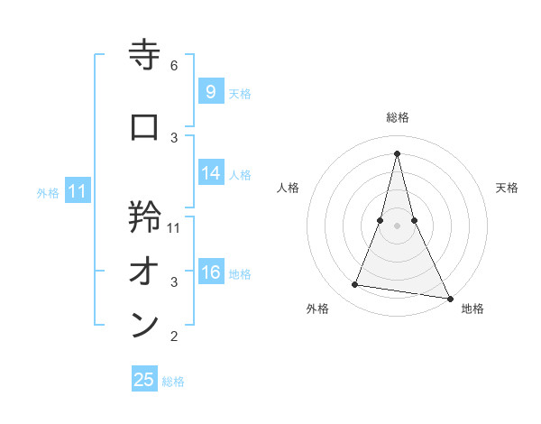 寺口 羚オンさんの総格は25画の4点!