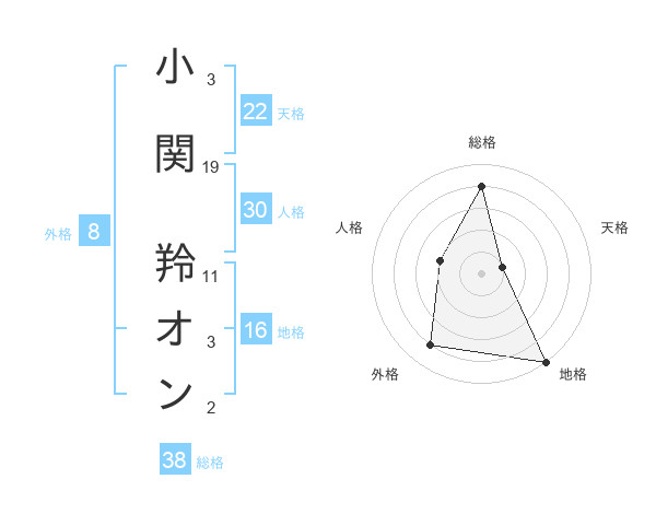 小関 羚オンさんの総格は38画の4点!