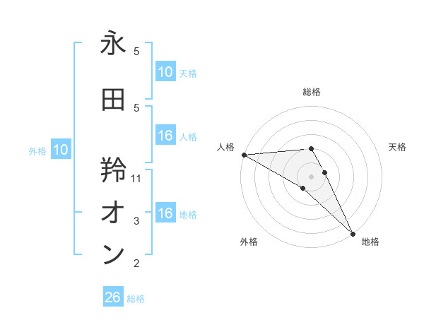 永田 羚オンさんの総格は26画の2点