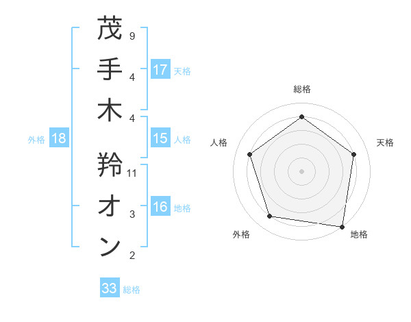 茂手木 羚オンさんの天格は17画の4点!