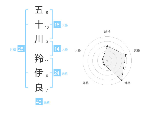 五十川 羚伊良さんを姓名の画数から五運を鑑定