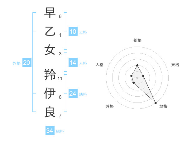 早乙女 羚伊良さんの総格は34画の2点