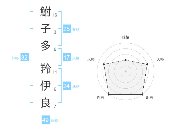 鮒子多 羚伊良さんの総格は49画の2点!