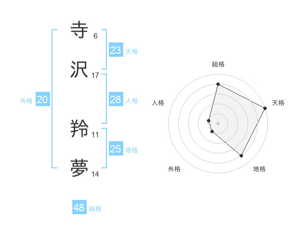 寺沢 羚夢さんの総格は48画の4点!