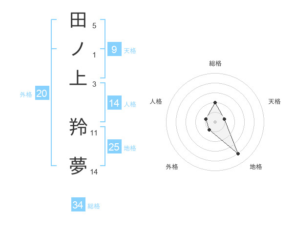 田ノ上 羚夢さんを姓名の画数から五運を鑑定