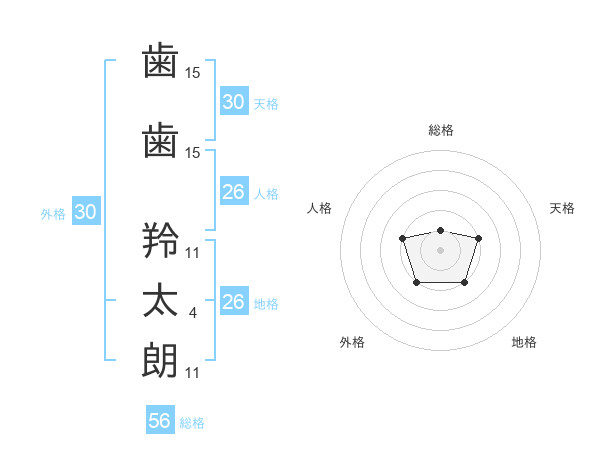歯歯 羚太朗さんの総格は56画の1点!