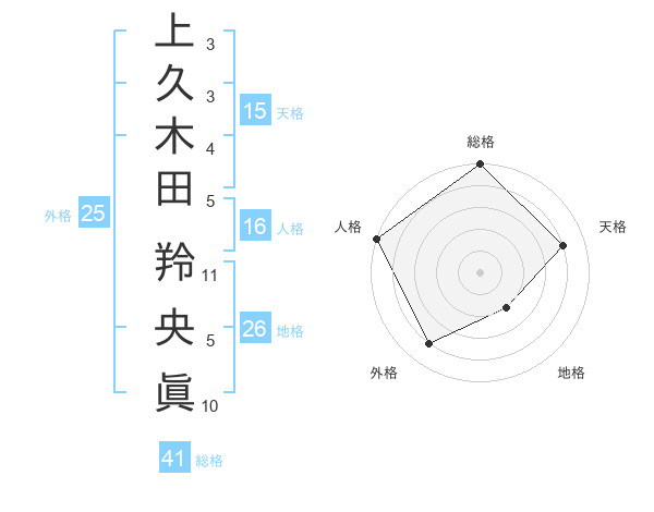 上久木田 羚央眞さんを姓名の画数から五運を鑑定