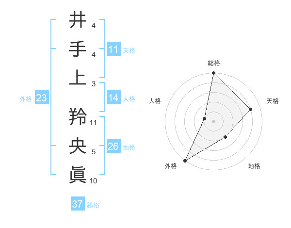 井手上 羚央眞さんの総格は37画の5点!
