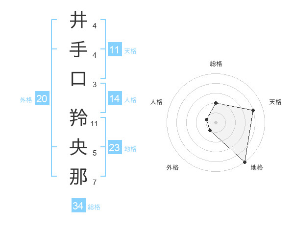 井手口 羚央那さんの総格は34画の2点