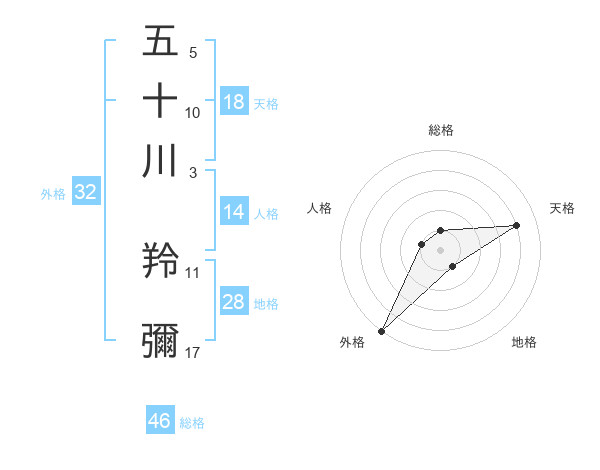五十川 羚彌さんを姓名の画数から五運を鑑定