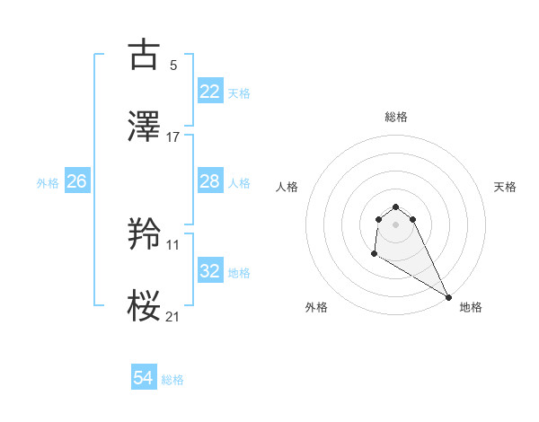 古澤 羚桜さんの天格は22画の1点!