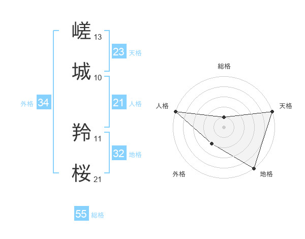 嵯城 羚桜さんを姓名の画数から五運を鑑定