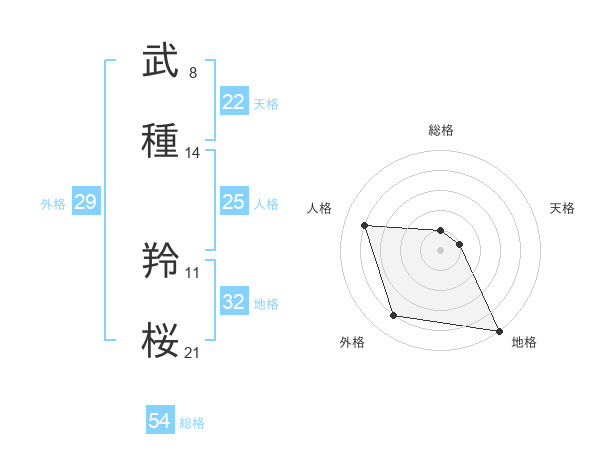 武種 羚桜さんの天格は22画の1点!