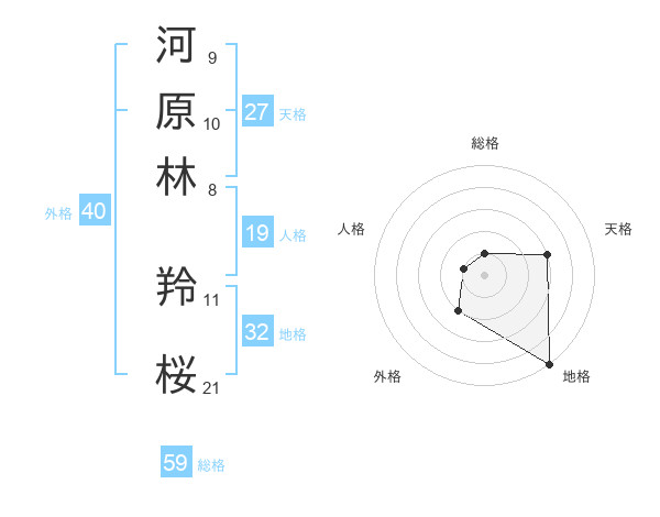 河原林 羚桜さんを姓名の画数から五運を鑑定