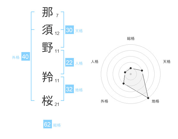 那須野 羚桜さんを姓名の画数から五運を鑑定