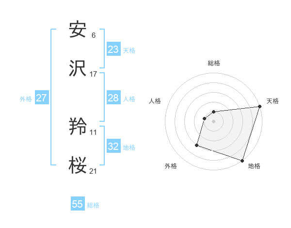 安沢 羚桜さんの総格は55画の1点!