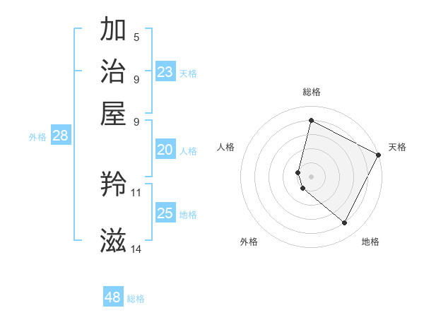 加治屋 羚滋さんの天格は23画の5点!