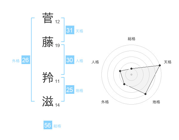 菅藤 羚滋さんを姓名の画数から五運を鑑定