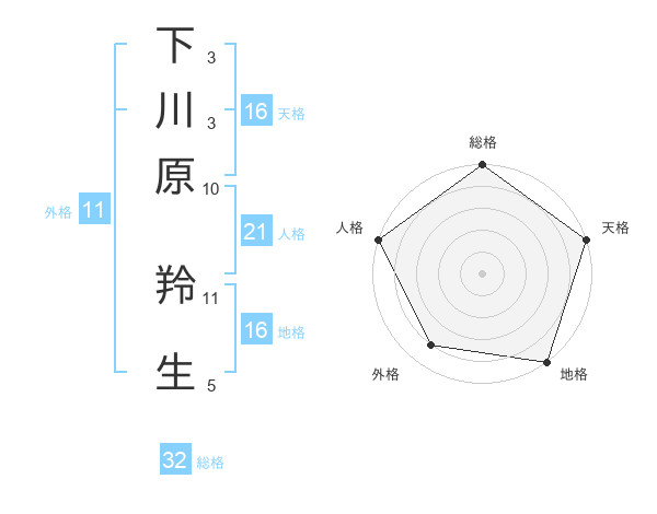 下川原 羚生さんを姓名の画数から五運を鑑定