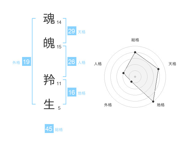 魂魄 羚生さんの総格は45画の4点!