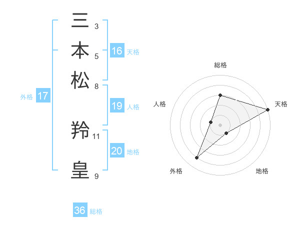 三本松 羚皇さんの天格は16画の5点!