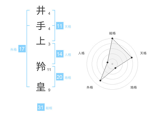 井手上 羚皇さんを姓名の画数から五運を鑑定