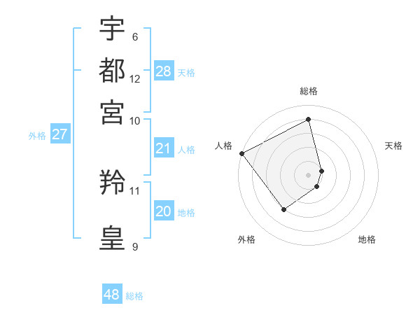 宇都宮 羚皇さんの総格は48画の4点!