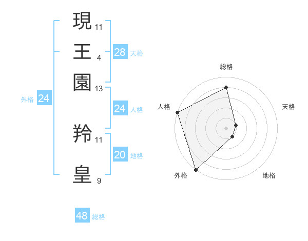 現王園 羚皇さんを姓名の画数から五運を鑑定