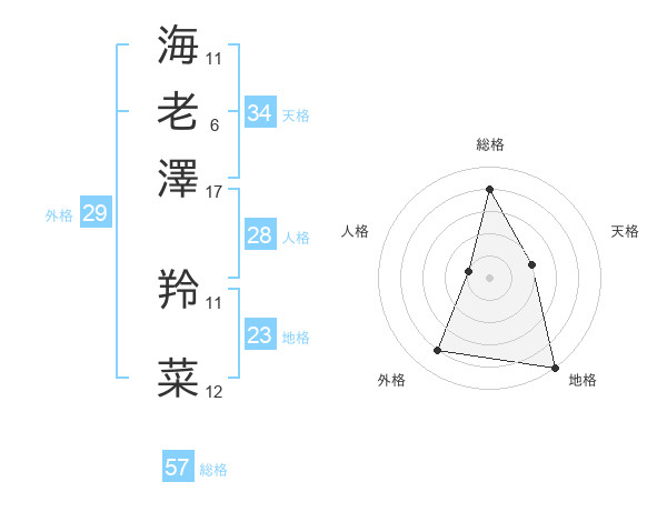海老澤 羚菜さんの総格は57画の4点!