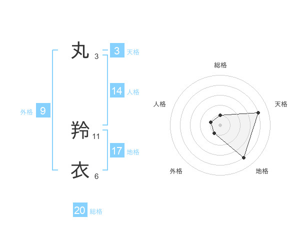 丸 羚衣さんを姓名の画数から五運を鑑定