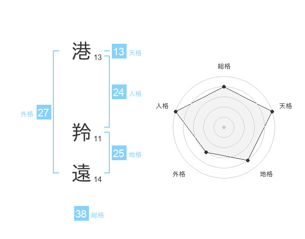 港 羚遠さんの総格は38画の4点!