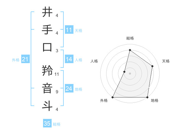 井手口 羚音斗さんの総格は35画の4点!